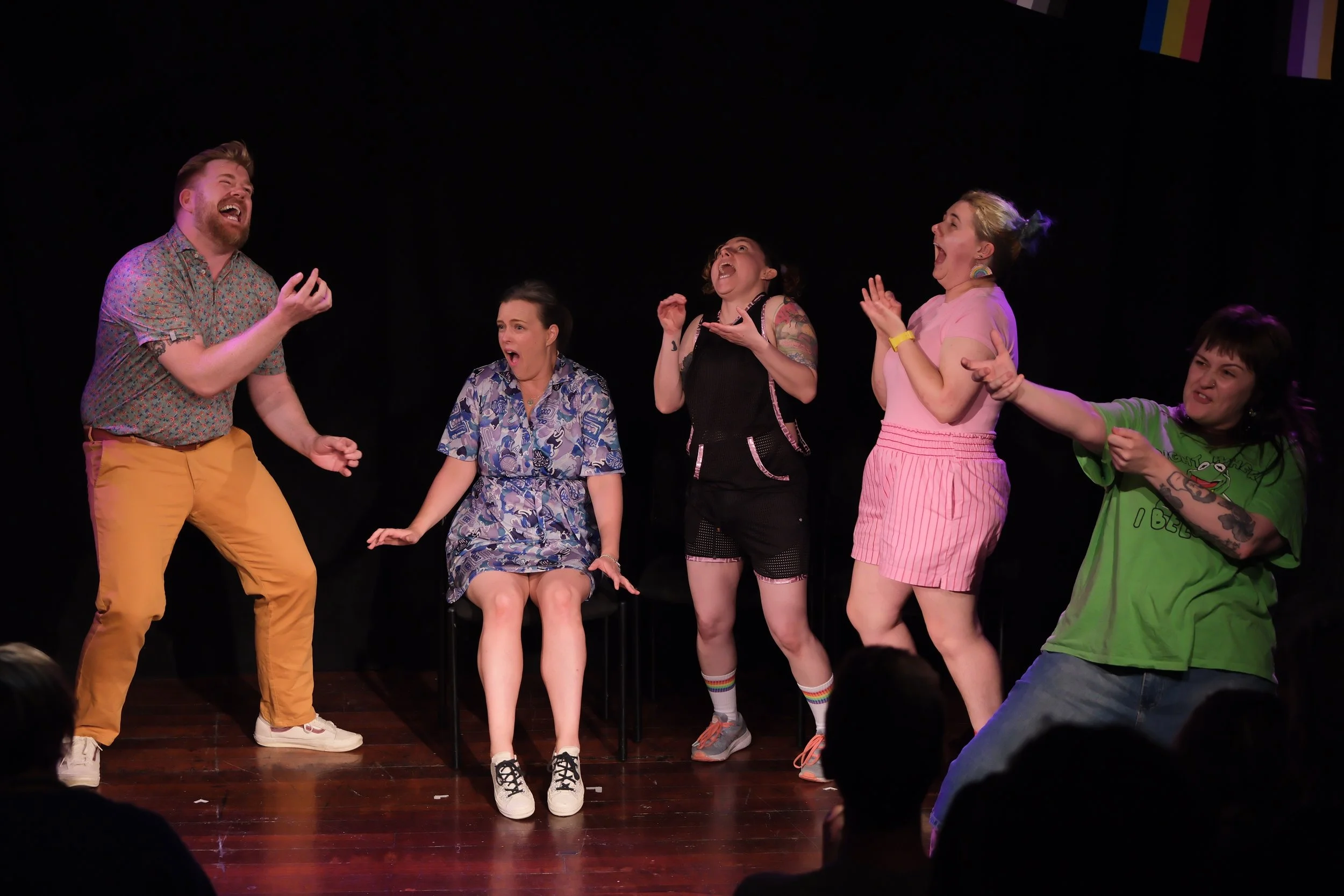 Comedy Culture NZ regularly produce lineup shows such as Femmes & Thems Comedy (Winner best regular show Wellington 23/24, Welly Comedy Awards and best Live Comedy Show, NZ Comedy Guild Awards 2025), Can’t Think Straight, and the Big Queer Improv Party, and are always ready to support the community of Comedy Culture performers' projects too.